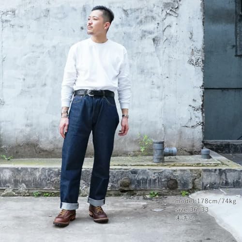 購入直後はパリッとしていて、糊がしっかりと付いている。ここからそのまま穿くというのも良いが、ゴワツキも中々のもの。やはり無難に行くと、多少洗いをかけて糊と染料を多少落としておきたいところ。ここからファーストウォッシュを経ると、サイズ感の変化も著しい。丈はツーサイズ、腰周りはワンサイズ程度からあまり変わらないくらいに変化する。であるから、Wは通常のサイズ感、Lはツーサイズ上のサイズを購入すると比較的に丁度良い。