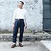 STFでノンウォッシュデニムを履いたまま入浴するスタイルでは、ファーストウォッシュを終えた直後から動き易さ抜群。このままもっと育てて行けば、どんどんと至高の履き心地へと進化していく。その思い入れのある愛着も一入。育てる楽しさも得られるSTFは、一本だけでもワードローブに加えたい。